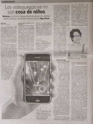 Hoy Medusa ha aparecido en un reportaje de la sección de Cultura del Diario de Avisos de Santa Cruz de Tenerife. Entrevistaron a Israel Castro, ilustrador y compositor del equipo. El pobre hombre creía que iba a responder a dos o tres preguntas y le tuvieron más de cuarenta minutos entre sesión de fotos y entrevista.